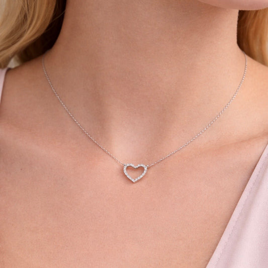 AMORE | שרשרת לב איקונית | כסף בציפוי רודיום ויהלומי מעבדה